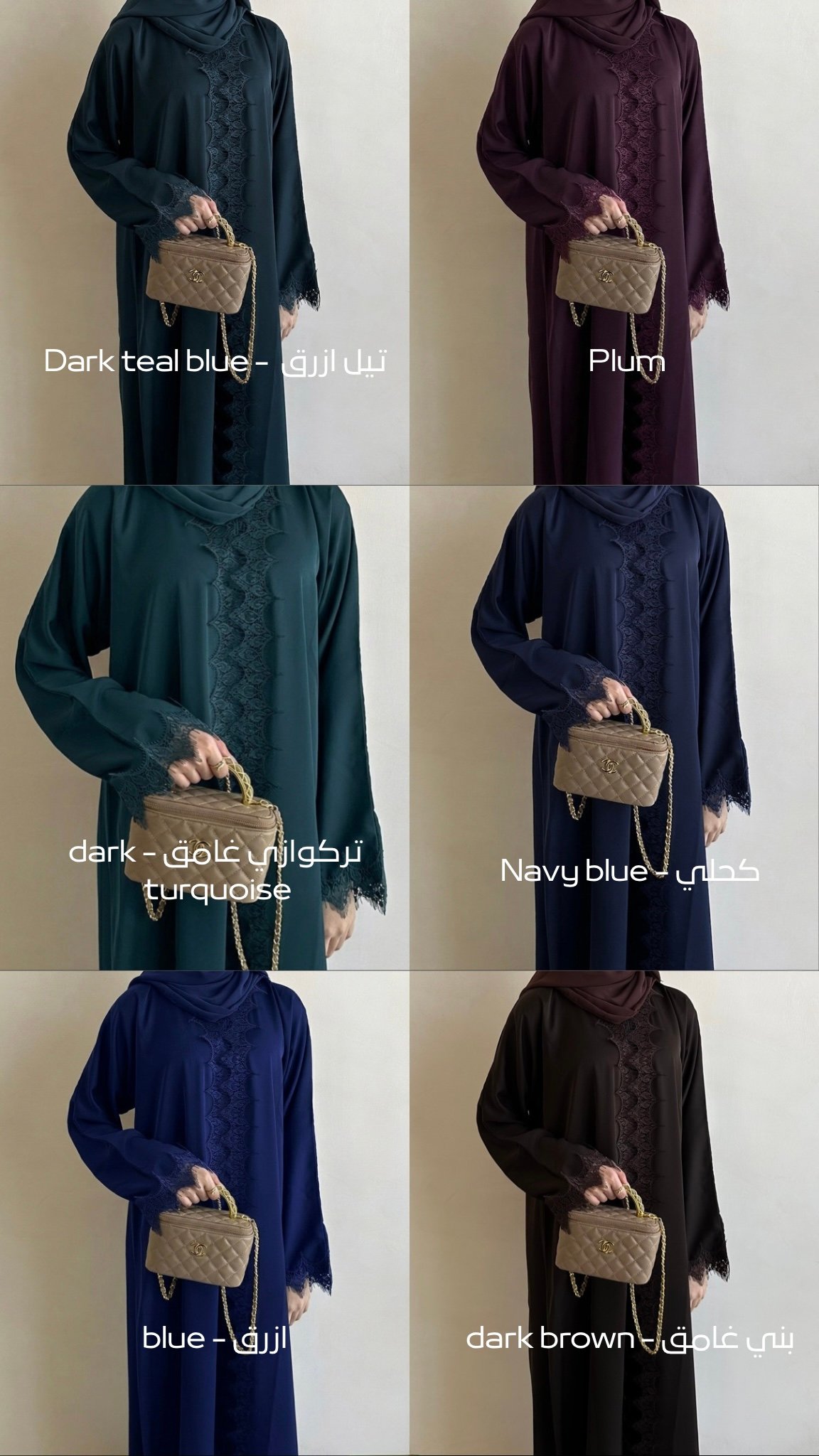 | color | اللون * | black – اسود, white – ابيض, Dark green – اخضر غامق, light grey – رمادي فاتح, dark grey – رمادي غامق, olive green – اخضر زيتوني, Dark teal blue – تيل ازرق, plum, dark turquoise – تركوازي غامق, navy blue – كحلي, blue – ازرق, dark brown ( like the photo )- بني غامق, burgundy – عنابي |