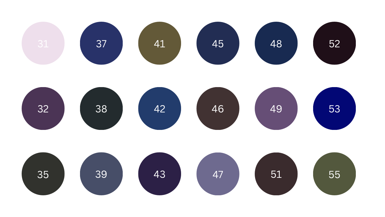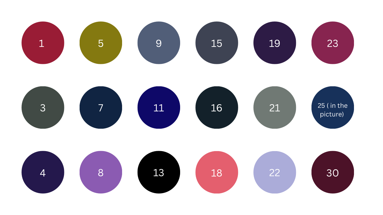 | color \ اللون * | 1, 5, 9, 15, 19, 23, 3, 7, 11, 16, 21, 25, 4, 8, 13, 18, 22, 30, 31, 37, 41, 45, 48, 52, 32, 38, 42, 46, 49, 53, 35, 39, 43, 47, 51, 55 |